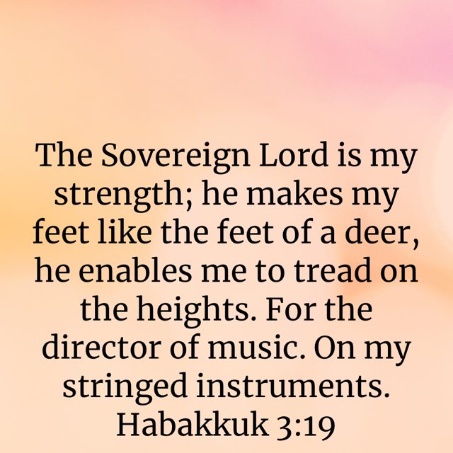 Habakkuk 3 19 The Sovereign Lord Is My Strength He Makes My Feet Like The Feet Of A Deer He Enables Me To Tread On The Heights For The Director Of Music On