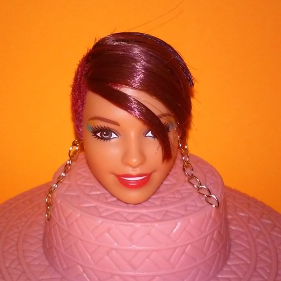Barbie Fashionistas Mini Styling Head Black Hair With Pink Highlight Walmart Com